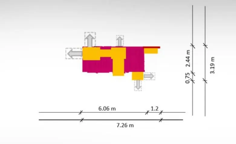 –L: 726 cm B: 419 cm H: 410 cm V: 3500 kg