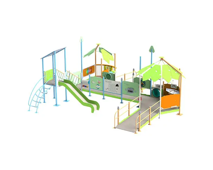 Vores produkt er et komplekst, kombineret tårn med forskelligartede opgaver, der også tager hensyn til handicappede børns behov, og som fremmer social interaktion. Kørestolsadgang er mulig i hele tårnets længde, med undtagelse af tårnsektionen med rutsjebane; denne side hjælper med at klatre, holde fast og glide – her kan børn med lettere bevægelseshandicap bruge denne del.